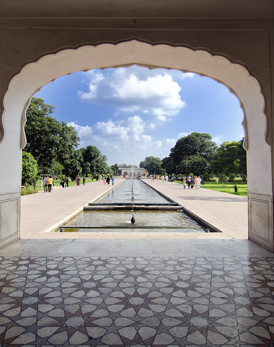 Sia come sia, oltre al Taj Mahal Shah Jahan dedicò alla moglie un’altra cosa straordinaria, cui il fato ha risparmiato la disgrazia della cartolinizzazione che, un po’ come la magliettizzazione di Che Guavara, ha invece colpitoTaj Mahal. Ma qui devo tornare a Gioia, alla quale non posso dedicare alcun mahall, ma solo pensieri e parole (talora anche sconci e prosaici, ma so che la divertono). Ebbene, era l’ultimo giorno di un viaggio di due mesi tra Pakistan e Turkestan cinese fatto nel 1998 e doveva essere novembre. Si era, io e Gioia, a Lahore, che fu per poco più di un decennio capitale dell’impero Moghul. Avevamo visitato un po’ tutto quello che c’era da visitare, ma mancavano i giardini realizzati per volontà e ordine di Shah Jahan. Ora, per chi fosse digiuno di architettura Moghul, i giardini Moghul sono una via di mezzo tra la nostra idea di parco, un giardino botanico e un palazzo residenziale genericamente ‘orientale’ (qualunque cosa significhi), il cui elemento centrale è l’acqua. Ma proprio tanta acqua, che scorre in canalette di marmo bianco ordinate geometricamente, garantendo freschezza all’occhio, al corpo e alla mente. Immaginatevi tutto questo, su diversi livelli, con terrazze, padiglioni che affiurano dall’acqua, fiori profumati e ucelli esotici, e capirete perché il giardino nella cultura Moghul (ma anche in quella persiana) era spesso cantato dai poeti come un’anticipazione in terra delle gioie del paradiso.